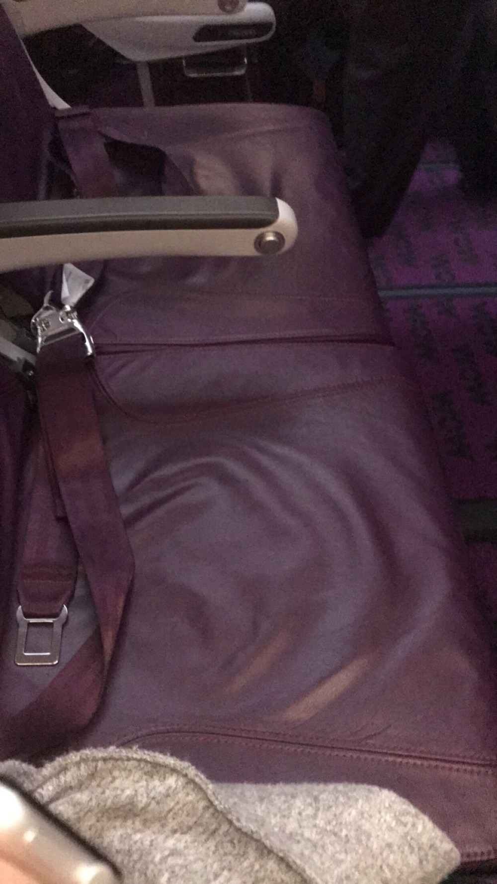 I made it to my seat on the plane, the flight attendants closed the doors and I realized that the two seats next to me were empty! I looked around me and it seemed to be a pretty empty flight (hallelujah!). After take off, and when we could unfasten our seatbelts, I popped a melatonin, blew up my inflatable neck pillow (a necessity when traveling), put on my compression socks and was ready to snooze. I slept spread out on the three seats that I had all to myself.