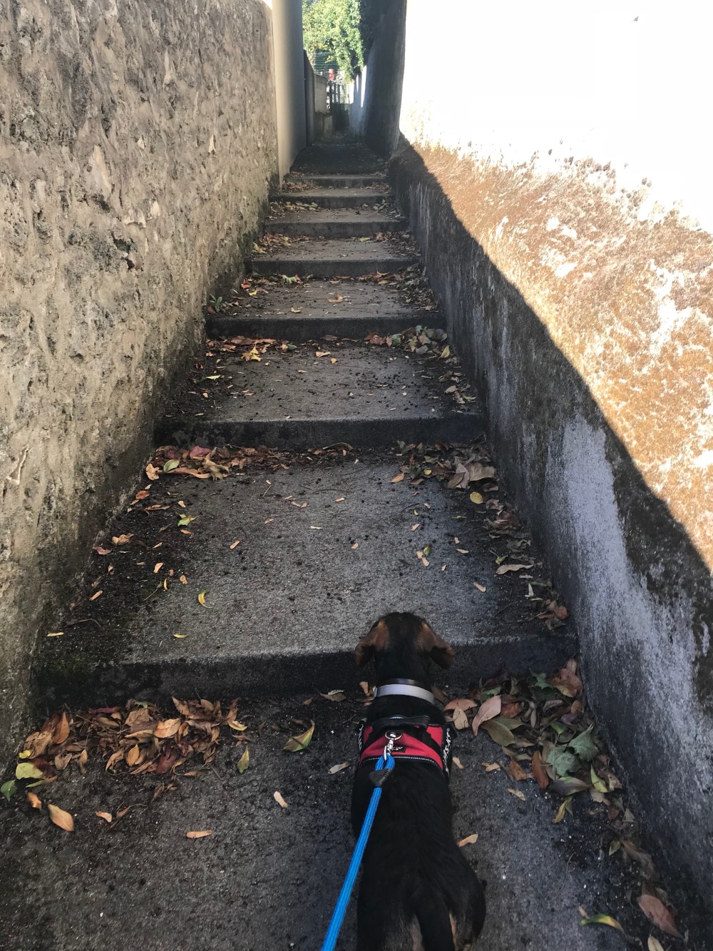 By taking Shop on walks, I have discovered the neighborhood, a nearby park, other neighborhood dogs, and the downtown Saint Avertin area.