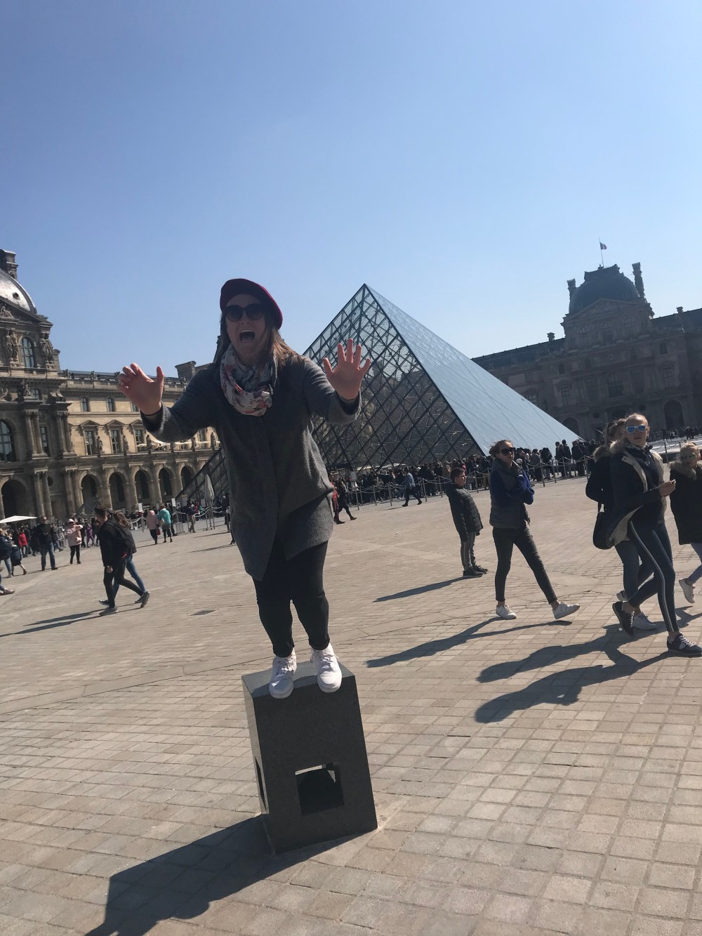 Since we officially looked like true Parisians, it was obligatory for us to take selfies in front of many of the famous landmarks throughout Paris. Starting with The Lourve: